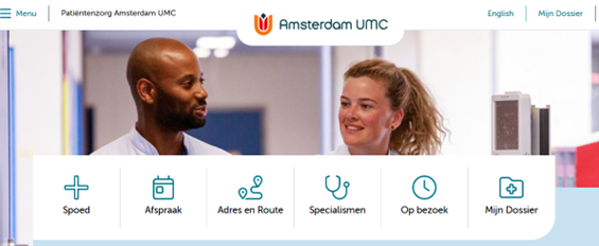 Hoewel Amsterdam UMC al jaren één academisch medisch centrum is, gevormd door de fusie tussen AMC en VUmc, ervaren veel respondenten beide locaties nog als aparte centra. Hun persoonlijke ervaringen zijn immers vaak gebonden aan één locatie. Respondenten gebruiken de website amsterdamumc.nl vooral om informatie op te zoeken over een specialisme of behandeling, maar ook voor praktische zaken zoals route en parkeren. De duidelijkheid en vindbaarheid van de informatie op de website wordt over het algemeen goed beoordeeld. Een aandachtspunt is de zoekfunctie, die soms (te) veel resultaten laat zien. Respondenten geven aan interesse te hebben in nieuws en verhalen uit Amsterdam UMC, met name over innovaties in de zorg en wetenschappelijk onderzoek. Die verhalen ontvangen ze het liefst via een nieuwsbrief.